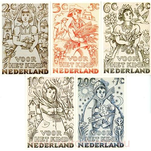 Set 5 pohľadníc 1980 Holandsko čisté, Starostlivosť o deti Nederland - Child Care