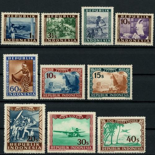 Známky 1948 - 49 Indonézia čisté, Republik Indonesia 1948 -1949 Inscription: "REPUBLIK INDONESIA"