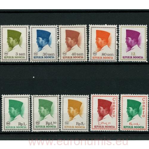 Známky 1964 - 66 Indonézia čisté, prezident Sukarno 1964, 1965, 1966 75th President Sukarno