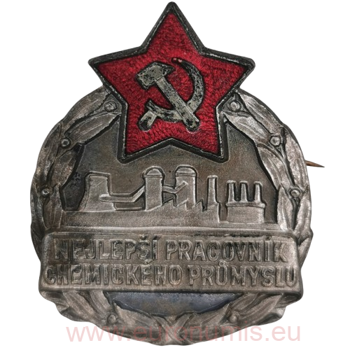 Obsahuje červenú hviezdu so skríženým kladivom a kosákom, pod ktorou je vyobrazenie továrne a nápis "NEJLEPŠÍ PRACOVNÍK CHEMICKÉHO PRŮMYSLU".