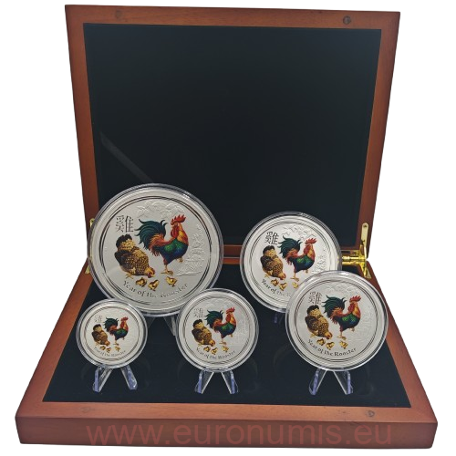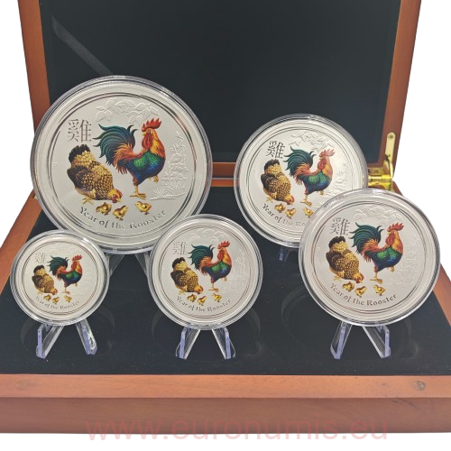 Úvod » AUSTRALIA a OCEÁNIA » Sada 5 mincí 2017 Austrália BU farbená 18,5 Oz Ag, LUNAR II. - Year of the Rooster