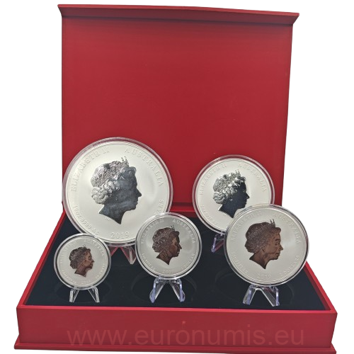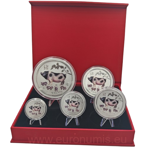 Úvod » AUSTRALIA a OCEÁNIA » Sada 5 mincí 2019 Austrália BU farbená 18,5 Oz Ag, LUNAR II. - Year of the Pig